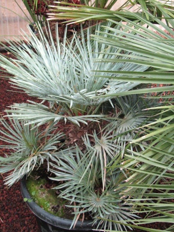 Palmier très rustique -12/-14°c , aux feuillesgrise bleutées.Plantation isolé ou en bac.