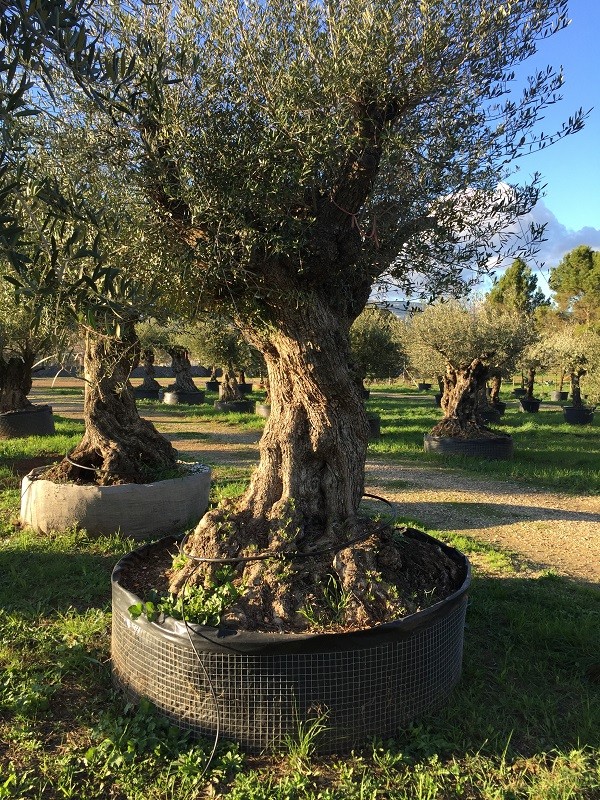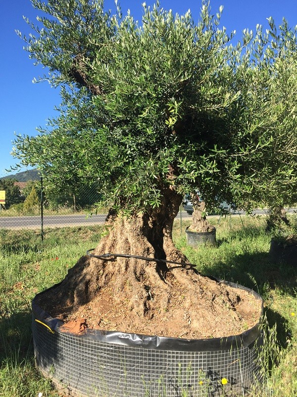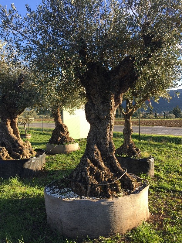 Grand choix d'oliviers centenaires en motte grillage : 8000 m2 de stockage d'oliviers à 10 minutes de Marseille et 20 minutes d'Aix en Provence.